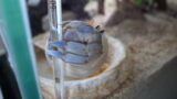 床砂の交換などでやむを得ず移動させる場合を除き、エサ・水換え時も含めてオカヤドカリには極力触らないようにします。